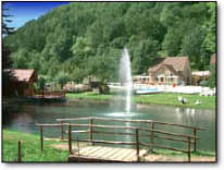 Hôtel-restaurant, au bord de l'eau, à 1040 m d'altitude, avec la montagne et la forêt pour horizon.